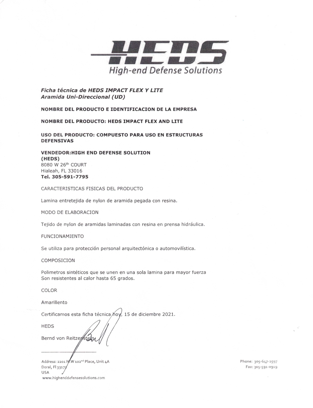 Nuestros materiales de blindaje cuentan con certificaciones nacionales en Venezuela como el DAEX y certificaciones internacionales como la Norma NIJ (Instituto Nacional de Justicia), La Norma EN 1063 (Comité Europeo de Normalización), HP White Laboratory, Inc, que garantizan su eficacia y resistencia, cumpliendo con las normativas de seguridad más exigentes.